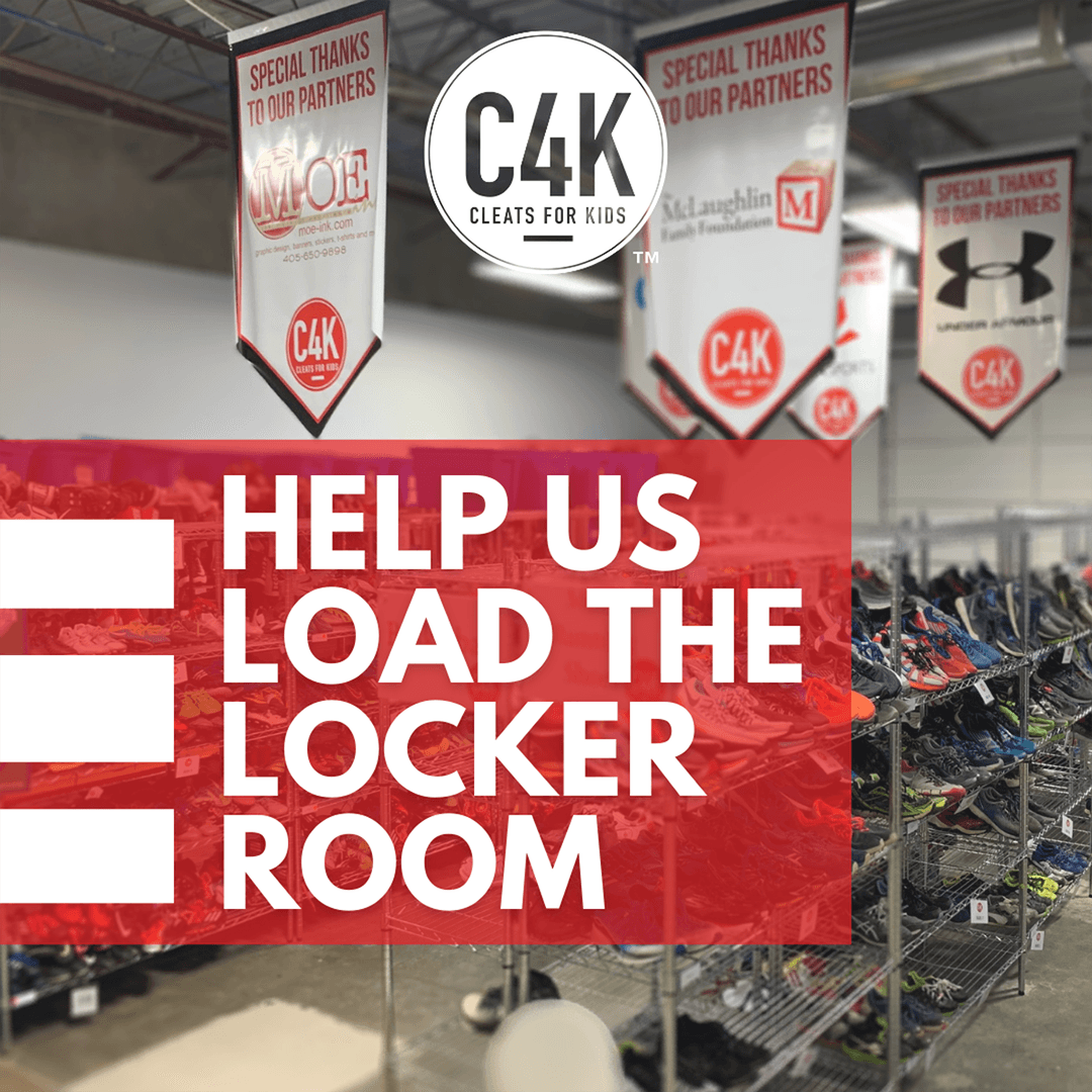 Announcing our new “Load the Locker Room” initiative to help with increased demand for sporting shoes, equipment and apparel! We've served nearly 150,000 kids from over 300 school districts across Oklahoma since our founding, but the work is not over yet! With the advent of the pandemic and inflation, C4K staff have noticed a marked uptick in visits to the Locker Room, sometimes impacting over 100 kids in a single day.